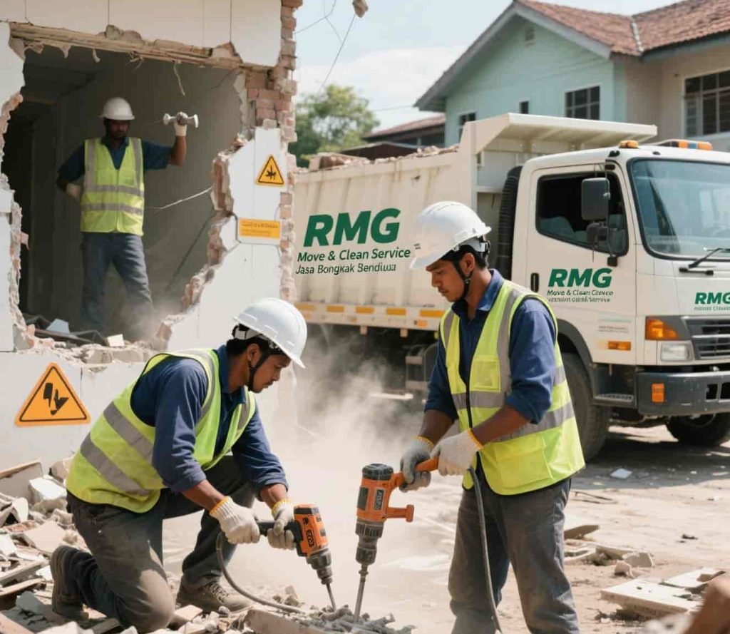 RMG Move & Clean Service adalah perusahaan jasa spesialis pembongkaran bangunan, barang berat, dan pembersihan area sejak tahun 2014. Kami melayani pembongkaran rumah, ruko, kantor, gudang, pabrik, hingga fasilitas industri dengan tenaga ahli, peralatan modern, dan standar K3 untuk memastikan proses cepat, aman, dan rapi.